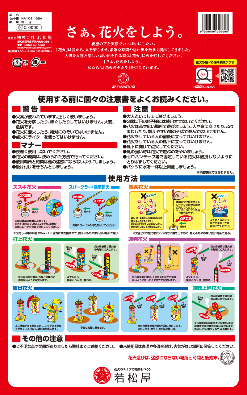 各種おもちゃ花火の使用方法・遊び方について